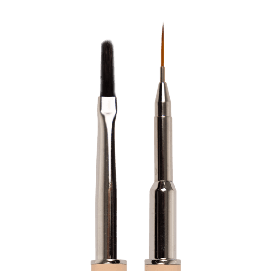 Aan de andere kant bevindt zich een ultranauwkeurige fine liner ideaal voor het uitwerken van details, strakke zijwallen, of het verfijnen van de cuticle zone.